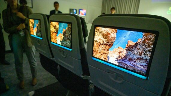 パナソニックが手がける旅客機向けの機内エンタメシステム(写真:編集部撮影)