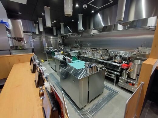 たとえばキッチンは、「神楽を舞っている舞台」をイメージしてオープンにし、「華麗にコックコートを着て、舞うように調理している姿を楽しんでもらうエンターテインメント」という位置づけに。今でいう「パフォーマンスキッチン」の走りといえるかもしれない。