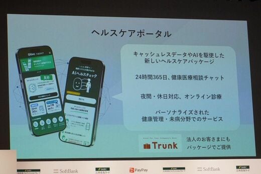 この提携の第1弾として、2025年度中に三井住友カードのクレジットカード会員向けに、ソフトバンクの子会社ヘルスケアテクノロジーズ株式会社とヘルスケアポータルを新たに提供する。24時間365日利用可能な医療相談チャットや、夜間や休日でも最短5分で利用可能なオンライン診療などがユーザーにとっての価値となる。