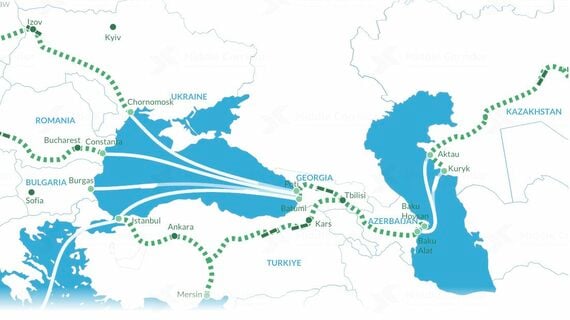 中欧班列のカスピ海横断ルートは、カスピ海東岸のカザフスタンのアクタウ港から対岸のアゼルバイジャンのバクー港に渡り、さらに隣国のジョージアから黒海を通ってヨーロッパに至る。中国から貨物を運ぶ場合、ロシア経由に比べて輸送距離を大きく短縮できるのもメリットだ。