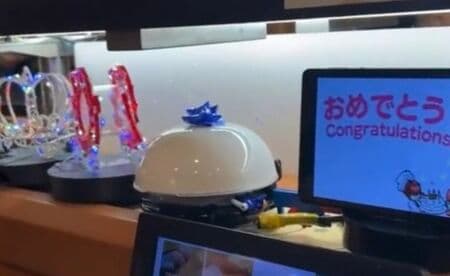 通常は寿司が流れるレーンに、突如として光る馬車が登場するギャップが強烈な異質感を生み、より一層気まずさを助長する。こうした突然の注目に戸惑う祝われる側の姿の投稿が最近よく見られるようになっている。
