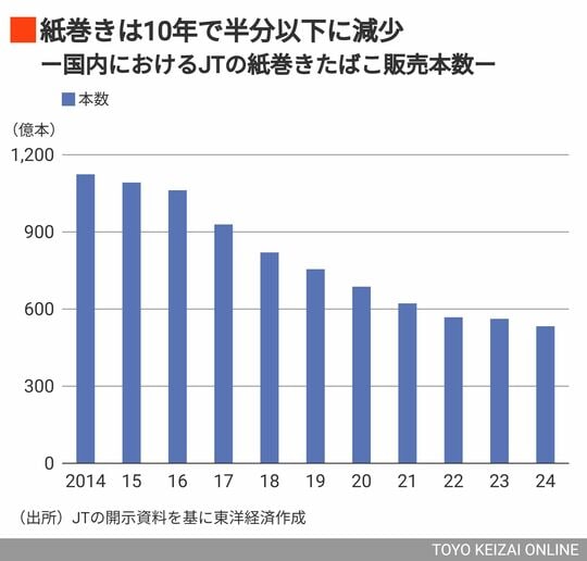 一方、主力の紙巻きたばこは先進国を中心に需要が減退している。2024年12月期の医薬事業の売上高はグループ全体の3%程度だが、経営資源をたばこ事業に集中させることは重要だ。