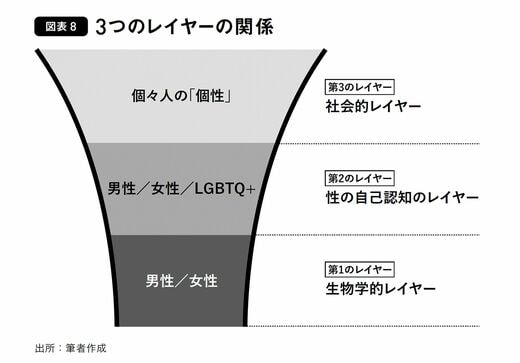 そもそも現代は、「女性」でも「男性」でもなく「個性」を重んじる時代である。少し理屈っぽくなるが、3つのレイヤーで説明したい。