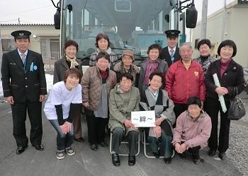 3月9日午後4時前、福島市内の松川応急第一仮設住宅に避難している飯舘村の母ちゃんたちを乗せたバスが千葉県柏駅前にある百貨店、そごう柏店の裏門に着いた。バスの後部座席には10人の母ちゃんたちが作った半纏や「までい着」と呼ぶ作業着など“商品”もぎっしりと積まれている。