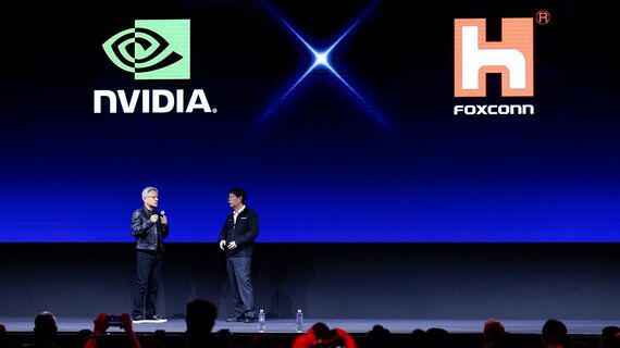 講演では鴻海が製造するハードウェアによって社会のスマート化を進める未来像や新たな経営方針を発表。講演後半では前日に基調講演を終えたエヌビディアのジェンスン・フアンCEOがサプライズ登場して、会場を沸かせた。