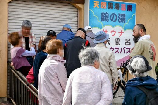 鶴の湯は天然黒湯温泉で露天風呂やサウナも完備している。15時半から24時までの営業だ。定休日は毎週水曜日。平日の昼3時くらいに行ってみると、すでに十数名の銭湯ファンが集まっていた。