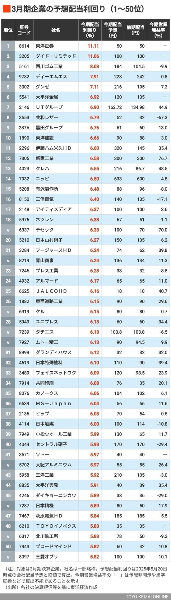政治・経済・投資 利回り「5%以上」は212銘柄! 2025年度の《予想配当利回りが高い》3月期企業ランキングTOP504 3分で読める 公開日時:2025/05/26 05:00 東洋経済オンライン編集部 フォロー 1/11 PAGES 2/11 PAGES 上位2銘柄は圧巻の「利回り11%超え」 次ページが続きます:【続いて51〜100位】 3/11 PAGES 4/11 PAGES 5/11 PAGES 6/11 PAGES 7/11 PAGES 8/11 PAGES 9/11 PAGES 10/11 PAGES 11/11 PAGES
