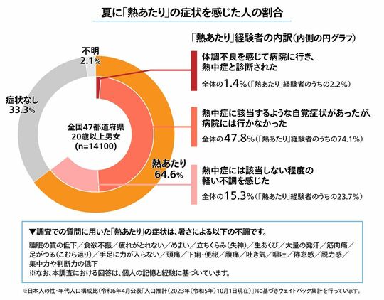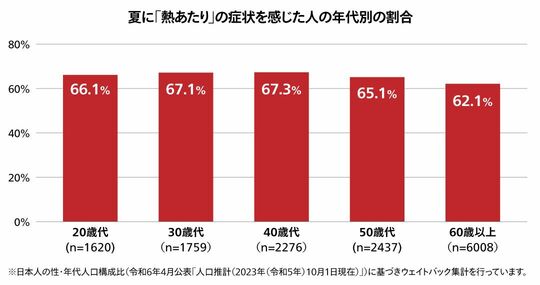実際、谷口医師の監修の下、ダイキンが2025年3月に全国の20歳以上の男女1万4100人を対象に実施した「全国調査」によれば、24年の夏に暑さによる不調を感じた人は全体の64.6%に上る※1。