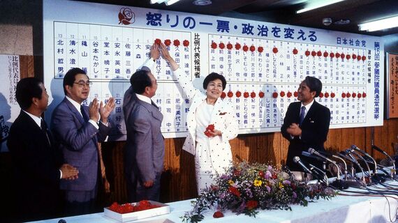 昭和から平成への代替わりにあたるこの年は、リクルート事件によって国民から厳しい批判を受けるなか、消費税の導入や農産物の輸入自由化、さらに宇野宗佑首相の女性スキャンダルも重なった。かたや最大野党の社会党は土井たか子委員長のもと女性候補を多数擁立し、「マドンナ旋風」を巻き起こした。