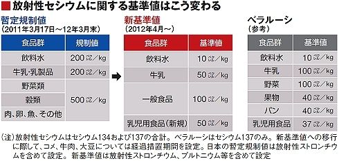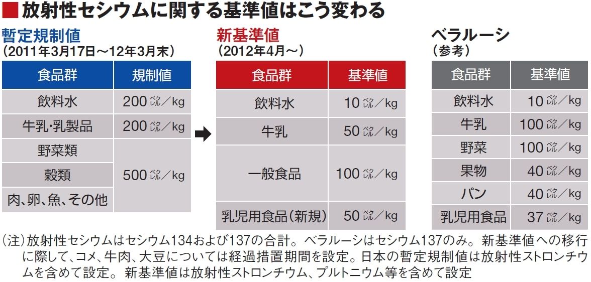 今年4月、この暫定規制値は廃止され、新たな基準値が導入される(表)。ただし、新基準値以内であれば安全が保障されるわけではない。食の安全確保に向けての一段の努力が求められている。
