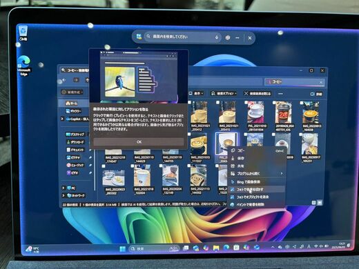 さらに「Click to Do(クリックで実行)」機能では、画面上の任意の場所でWindowsキー+クリックすることで、AIが次のアクションを提案してくれる。テキストを選択すれば「Webで検索」「Copilotに質問」などのオプションが表示される。アプリケーションを経由せず、やりたいことを直接実行できる世界が近づいている。