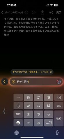 誤字脱字があるところも何とか文意を読み取って、比較的読みやすい文章を作成してくれる。Apple Intelligence任せだと、内容が偏っていたり、脱字に引っ張られることが多かった。