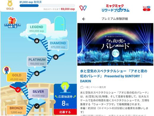 なお、筆者はためられる気がまったくしないが、経験値65万expのLEGENDになると、万博会場内の「デジタルウォレットパーク」内のラウンジが利用できたり、ミャクミャクと特別な記念撮影ができる特典も用意されている。