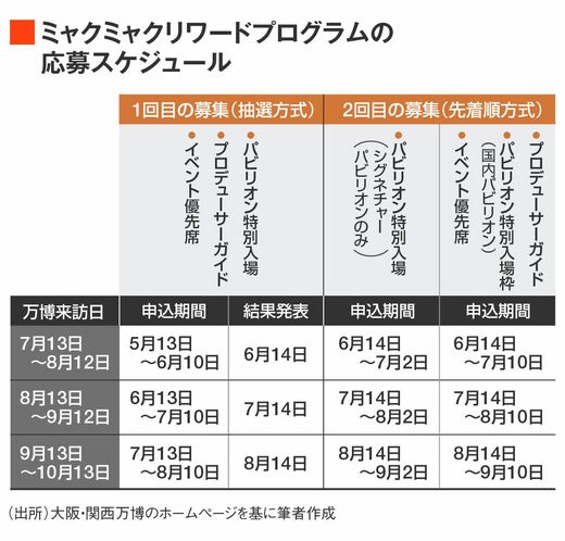 万博会場のお土産コーナーは激混みだと聞くし、利用するかどうかわからない顔認証決済のために、顔認証を登録するのは面倒……。それならクイズに3週チャレンジしたほうがいいかもなどと思うのだが、そんなにのんびりはしていられない。その理由は、今から間に合う申し込みが残り3回しかないからだ。