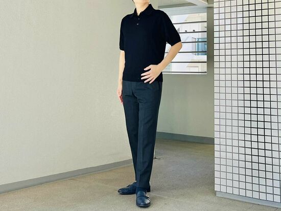 これまでポロシャツのNG印象といえば、「長すぎる丈がだらしない」など、サイズ感に関わるテーマが中心だったように記憶しています。ところがクールビズ解禁から20年が経ち、ポロシャツ生地のバリエーション増加からも、今回は生地感にフォーカスできました。