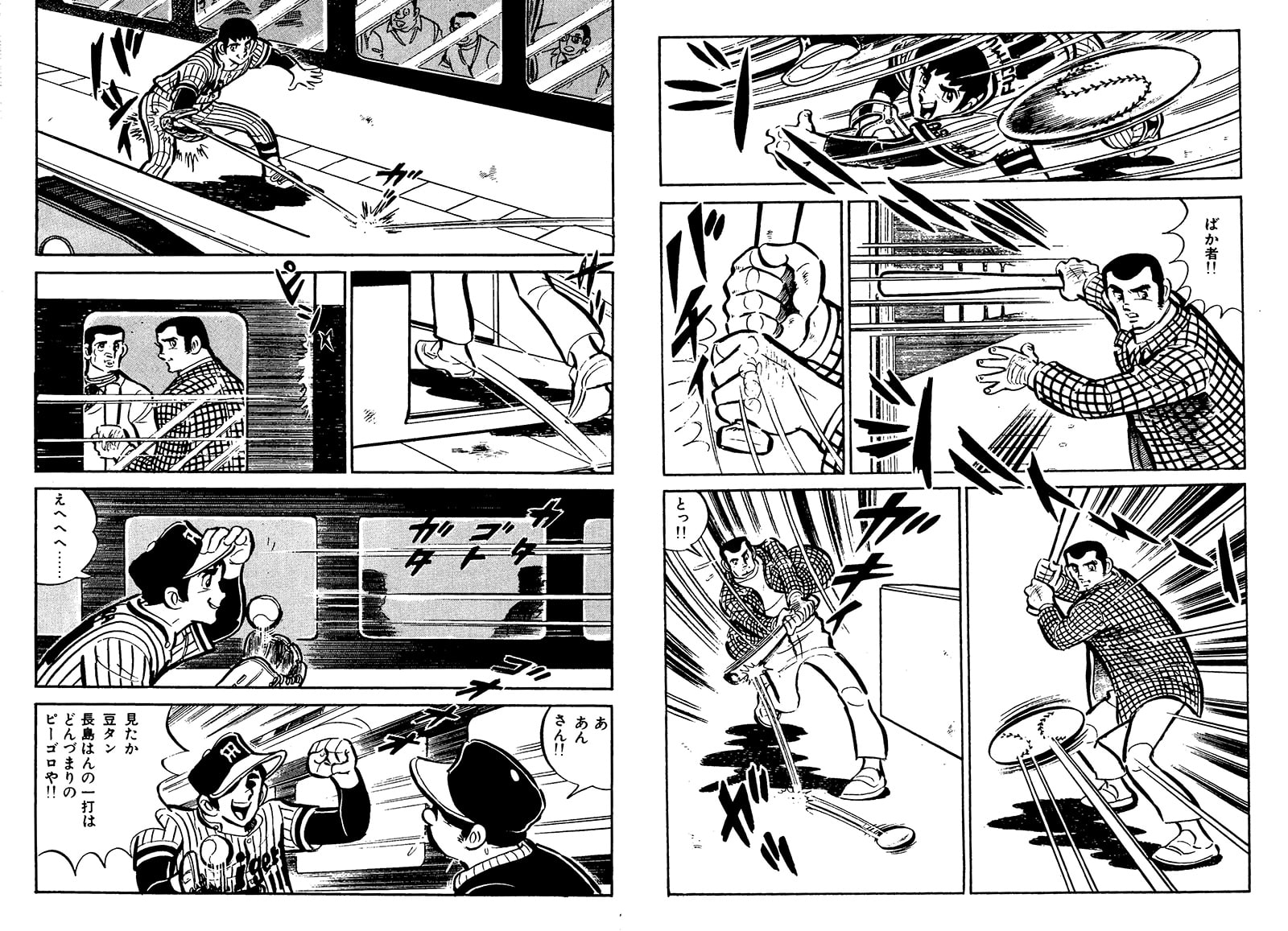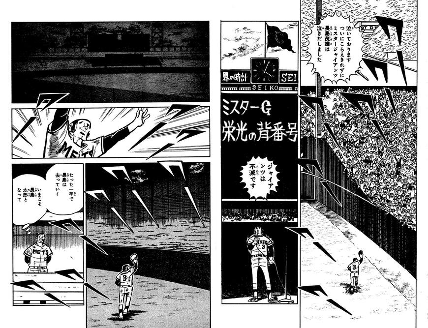 物語終盤、東大を中退し阪神タイガースに入団した主人公・藤村甲子園は、一度は二軍落ちを経験しながらも初勝利を完封で飾る。が、その試合を観戦していた長嶋に「フフフ……あの程度ならいつでも打てる……」と言われてカッときた藤村は、なんと翌日広島に向かう長嶋に新幹線のホームで勝負を挑む。