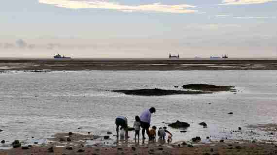 開発を免れて奇跡的に残ったイノーには、休日ともなれば親子連れや観光客が訪れ、子どもたちが小魚やヤドカリを追いかける姿も見られる。少年たちが自転車でやってきて、海に沈む夕日を眺めながら時間を過ごす場所でもある。しかし昨年、その海に櫓が立った。