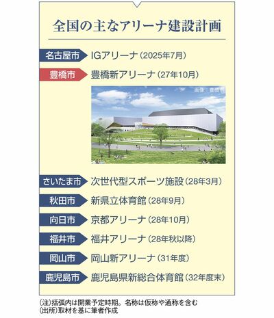 これが実質的に、全国的な“アリーナ建設競争の号砲”であり、上表のように全国でアリーナ建設計画が進んでいる。しかし、住民や議会の反発などの壁にぶつかっている計画も少なくない。豊橋市にとっても市民の分断を招く長い迷走の始まりとなった。