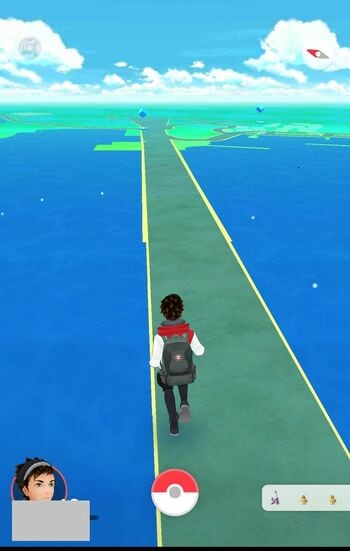 「ポケモンGO」プレイ画面。しまなみ海道を横断中(筆者スマホからスクリーンショット)