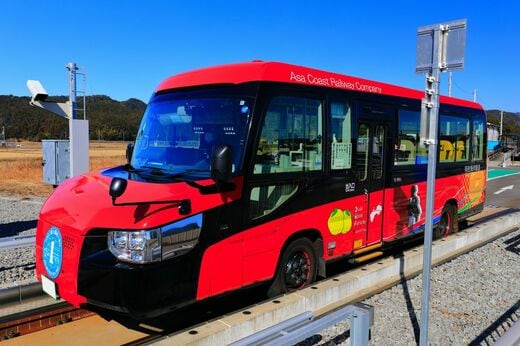 確かに名古屋ガイドウェイバスは一般道ではバス、専用軌道では新交通システムの車両として走る。阿佐海岸鉄道のDMV(デュアル・モード・ビークル)も道路と線路の両方を走ることができる。なお、富士スバルライン上では磁気マーカーに優位性があるとのことだったが、一般道では白線も選択肢となるとしている。