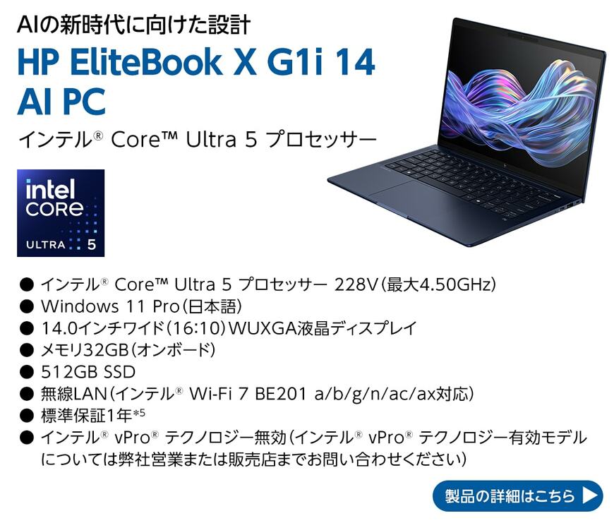 前述した「HPと超えていく、はたらくの未来へ。」キャンペーンで紹介するビジネスAI PCが「HP EliteBook X G1i 14 AI PC」だ。