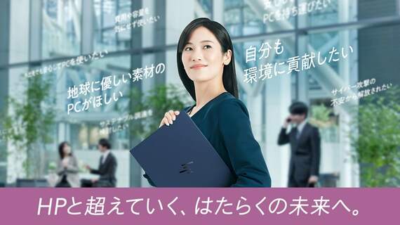 現在日本HPは「HPと超えていく、はたらくの未来へ。」と銘打つキャンペーンを展開しており様々な企業が抱える課題に寄り添い、競争力をもたらすビジネスAI PCを紹介している。ここでは、HPのビジネスAI PCのサステナビリティへの取り組みを紹介する。