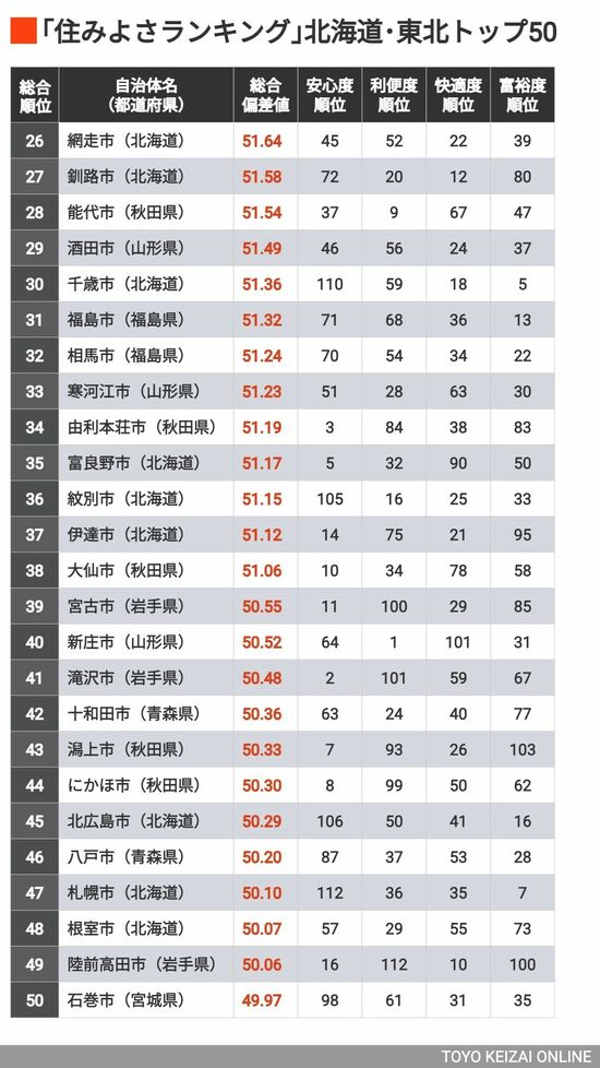 「住みよさランキング2025」北海道・東北トップ50【この記事】