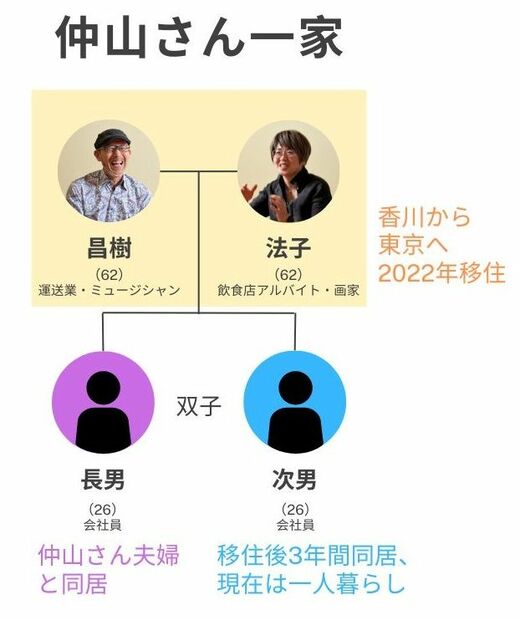 「東京でアーティストになりたい」――。そんな大きな夢を抱き、59歳にして香川県から東京に移住した夫妻がいる。仲山昌樹さん(62)、法子さん(62)夫妻だ。2人は香川で生活しながら、同じタイミングで「第二の人生」に踏み出そうとしていた。「東京」にたどり着くまで約30年。それまでの経緯を聞いた。