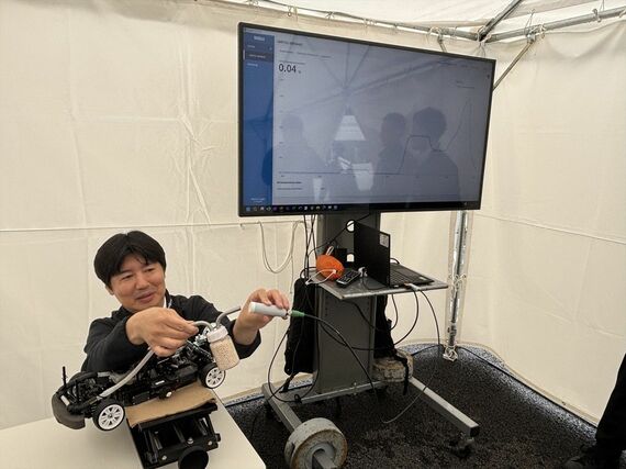 用意されたのは、「マツダ3」のボディをまとったタミヤ製2ストロークエンジン付きのラジコンカーだ。