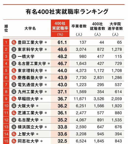 キャリア・教育 #本当に強い大学 前の記事 次の記事 2025年最新版!「有名400社への就職に強い大学」ランキング。2年連続で“あの大学”が1位に 3分で読める 公開日時:2025/06/23 06:00 井沢 秀 大学通信 取締役情報調査・編集部部長 フォロー 1/4 PAGES 2/4 PAGES 3/4 PAGES 有名400社実就職率ランキング① 次ページが続きます 4/4 PAGES