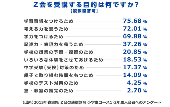 実際、Z会の幼児コース年長会員アンケートでも、公立、私立関係なく「小学校への入学準備ができる」という受講理由が最も多くなっているという。
