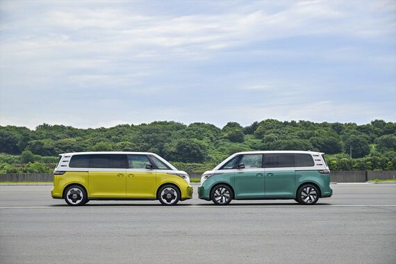 東京・六本木の特設会場で紹介されたID. Buzz。日本に導入されるラインナップは2つだ。