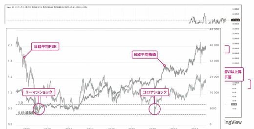 2008年に発生したリーマン・ショック時の日経平均PBRは0.81倍で、これが過去最低ラインです。2020年のコロナショック時は日経平均PBRが0.82倍で、過去最低ラインに近づいていました。世界的な大恐慌と言われたリーマン・ショック時やコロナショック時の日経平均PBRは約0.8倍なので、今後は0.8倍あたりに到達するようなことがあれば、数十年に一度というレベルの暴落が起きていると判断でき、バーゲンセール状態だと考えられます。