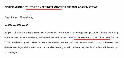 ある学校では、2022年~2025年までY7(中学1年生)年間授業料が4万5800マレーシアリンギット(※以降RM)だったところ、2026年以降はRM4万9200に値上げするとの通達がありました。