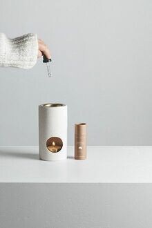 アディションスタジオのシナジーオイルバーナーは、本体が石灰岩で作られています。さらに、エッセンシャルオイルとオーストラリア製蜜蝋のキャンドルが、ダブルであなたに癒やしを届けます。