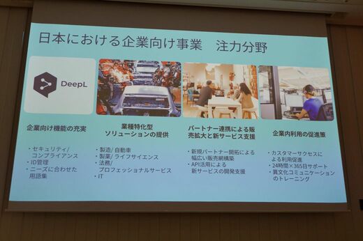 高山氏はさらに踏み込んで「日本人は言語に対して特にセンシティブだ」と指摘した。「外国人の中途半端な日本語に違和感を覚えるように、翻訳では少しのズレも許されない。汎用AIが多機能化する中でも、言語に特化したDeepLには明確な優位性がある」と、7年以上のデータ蓄積による専門特化の重要性を強調した。