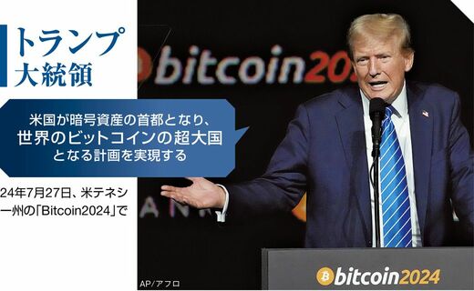 しかし、24年の大統領選挙が近づくにつれて、状況は劇的に変化。急成長を遂げた市場とそこに集う人々の政治的な影響力を認識した共和党のトランプ陣営は、選挙戦略の一環として暗号資産コミュニティーへの積極的なアプローチを開始する。象徴的な出来事が、世界最大のビットコインコンファレンス「Bitcoin2024」でのトランプ氏の登壇と、暗号資産に好意的な演説だった。