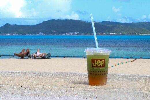 夏の沖縄。太陽からの直射日光と、白い砂浜から跳ね返る太陽光を両方浴びながら、ゴーヤー&オレンジスラッシュを一口。下層のオレンジで甘さを感じ、そうと思えばちょっとだけストローを引っ張り出して上層のゴーヤーをチューチューと吸ってほろ苦さを交互に感じている。あれ?何かに似ているな。あ、さっきジェフオレンジとゴーヤーリングを交互に楽しんでいたあの技と一緒だ。なかなか「苦み」まで楽しめるファストフード店ってないよなと思いながら、青々とした感覚を味覚でも視覚でも感じていた。