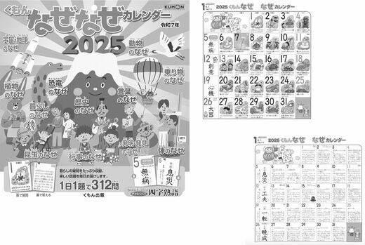「くもんなぜなぜカレンダー」の表側には、その時季の行事や星座などに関連した質問が載っています。そして裏側には、その答えと答えにまつわる歴史や背景が書かれています。このカレンダーを使えば、子どもが今興味を持っている行事と結びつけて、季節の風物詩や歴史などについて楽しく知ることができるはずです。