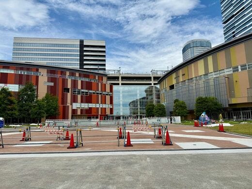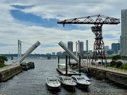「アーバンドック ららぽーと豊洲」の個性を形作っている「ドック広場」。目の前には海、奥には「レインボーブリッジ」、右手には晴海のタワーマンション群と、なんとも東京の湾岸らしい景色を楽しめるスポットである。地方出身の筆者は、この景色に胸が高まるものだ。子どもを連れたファミリーやペットを散歩する人、若い男女などが行きかっている。