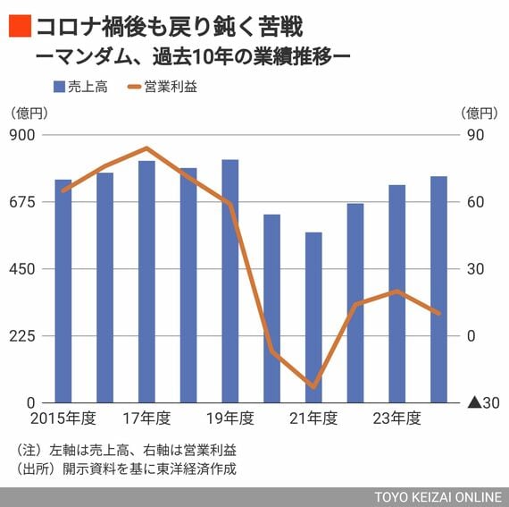 マンダムは2000年以降、20年近くにわたって安定して50億円以上の営業黒字を計上してきた。しかし、コロナ禍を大きな転換点として厳しい局面を迎えている。