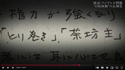一方でその後、日枝久氏になぜ権力が集中したのかを掘り下げていて、このパートはよくここまで頑張ったと感心した。日枝氏の側近だった遠藤龍之介前副会長をはじめ、周りにいた人々の証言を重ねていき、当初は人望が集まる上司だったが、徐々に「独裁者」に変貌する過程が明らかになった。