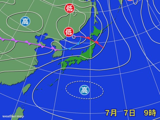 東京湾から約1000km南方にある、小笠原諸島の辺りに高気圧が見られるときです。本州付近に暑い空気が流れ込みやすく、極めて気温が上昇します。