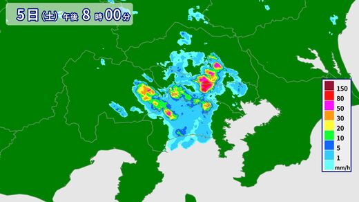 7月5日は、最高気温が東京34.4℃、さいたま34.3℃など、日中は晴れて厳しい暑さでした。ところが、夜は雨雲が発達して局地的に猛烈な雨が降り、埼玉県に「記録的短時間大雨情報」が発表されました。