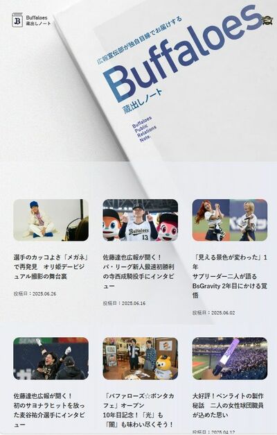 通訳や用具担当など、球団の裏方にスポットを当てた記事は球団の広報宣伝部ならではの切り口だ。YouTubeチャンネルやSNSでライトなファンにアプローチする一方、蔵出しノートのような深掘りした記事でコアなファンもカバーできる。