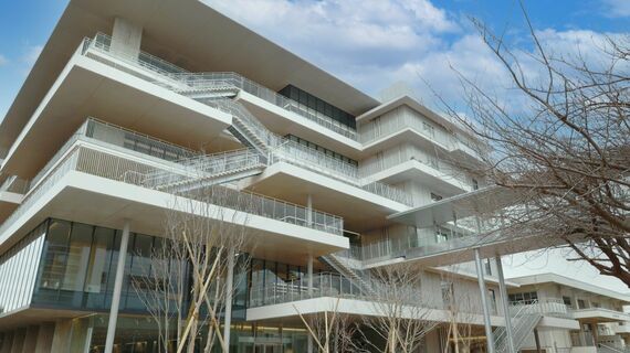 理工学部、農学部がある生田キャンパスでは、教室、図書館、ラーニングコモンズの各機能を複合した共用教育棟「センターフォレスト」が25年1月に竣工した。不足していた教室数を充足するとともに、学生の自主学習を促進する施設となっている。