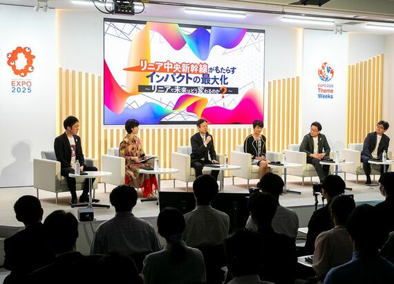 大阪・関西万博では、社会課題を取り上げ具体的な対話を通じて解決策を探る「テーマウィーク」を実施している。5月15日〜26日は「未来のコミュニティとモビリティ」をテーマとし、複数のイベントが開催された。JR東海が開いたトークイベント「リニア中央新幹線がもたらすインパクトの最大化〜リニアで未来はどう変わるのか〜」もその1つだ。