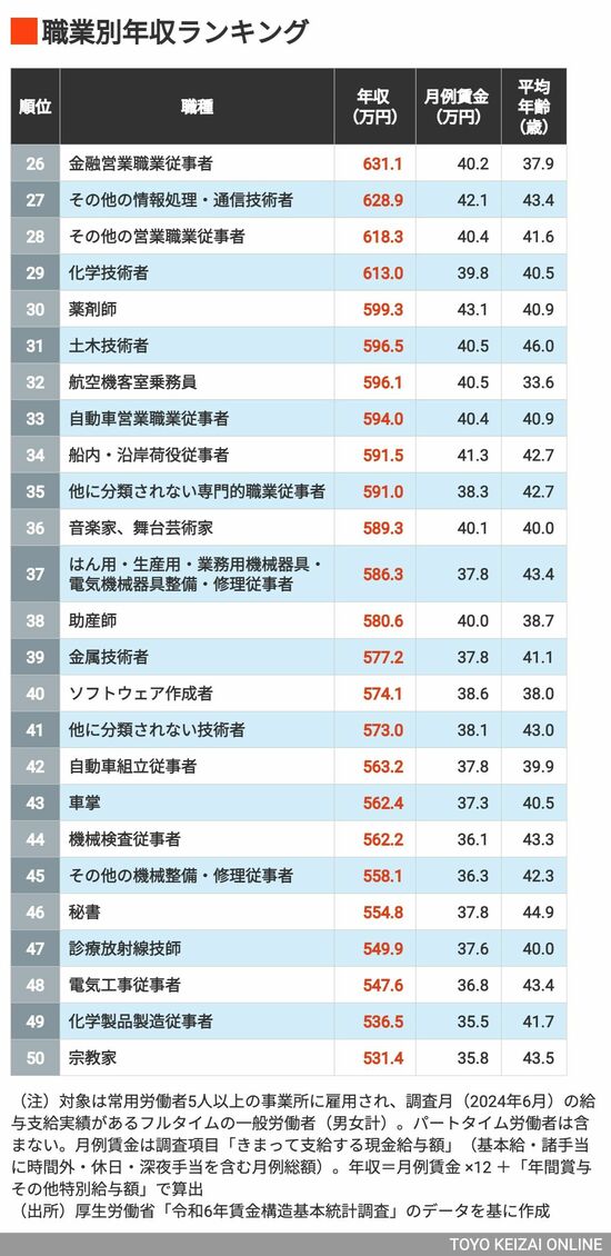 政治・経済・投資 #賃金・生涯給料ランキング 前の記事 次の記事 平均年収が高い職業ランキング!3位は歯科医師、2位は医師、では1位は? 2分で読める 公開日時:2025/07/11 08:00 東洋経済オンライン編集部 フォロー 1/7 PAGES 2/7 PAGES 3/7 PAGES 26〜50位 次ページが続きます 4/7 PAGES 5/7 PAGES 6/7 PAGES 7/7 PAGES