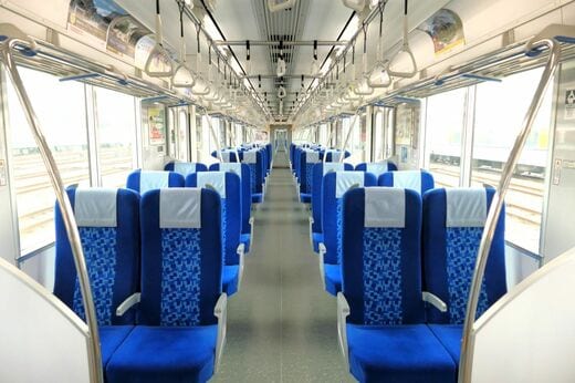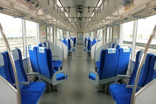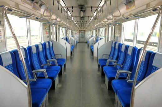 基本的に東上線は側面の窓を背にしたロングシートが並ぶ“ザ・通勤車両”ばかりだが、「50090型」は唯一、進行方向に向かって座るクロスシートに転換することができる。ドアとドアの間に並ぶ座席が転換式で、クロスシートの場合は2+2の配列、ロングシートの場合は6人がけになる。