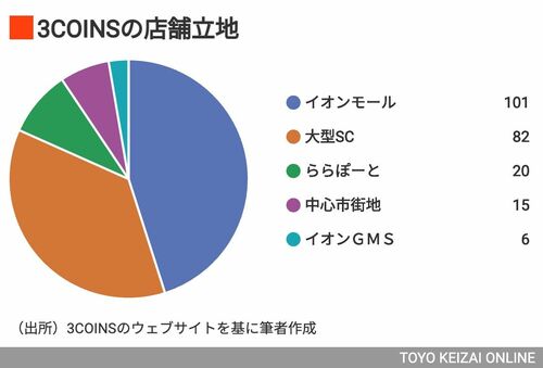 要するに、このクラスの館は限られた数しかないのであり、そこを変えないのなら出店余地はかなり限定的だ。これに対して、ダイソーなど100均出身企業は、大型モールにも出るが、食品スーパーを核店舗とした生活必需品を中心とした商業施設や路面店にも出店することができる(そちらがむしろ主戦場といえる)。